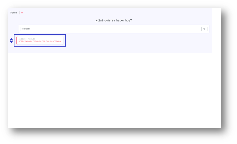 Buscar el nombre del trámite a realizar y dar clic sobre la opción que se visualiza: