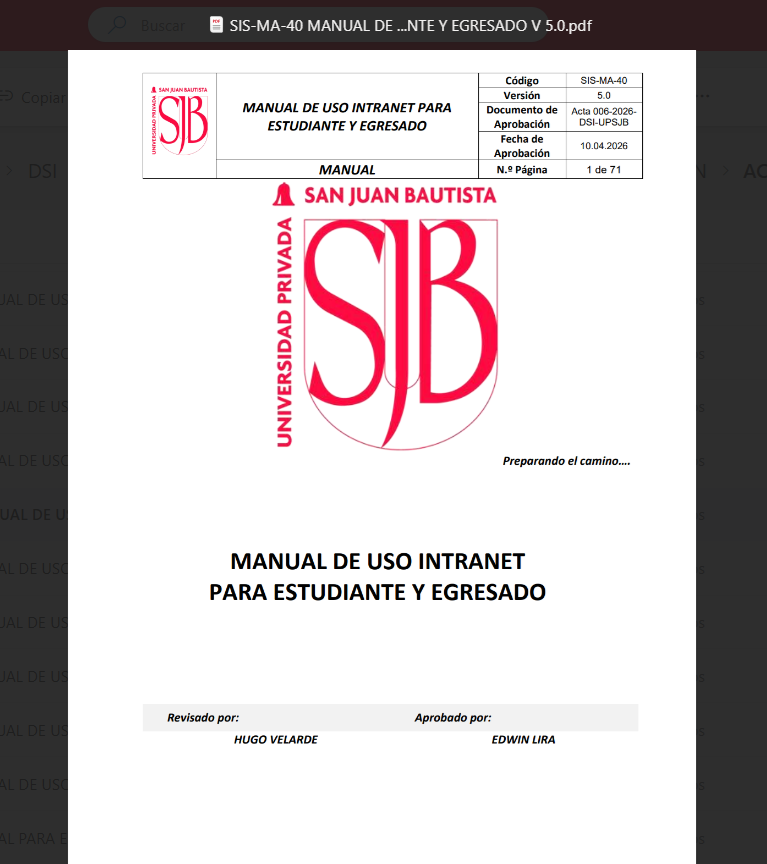 Se podrá acceder al Manual de Uso del Estudiante PS Campus desde el URL Manual de Uso Intranet para estudiante y egresado